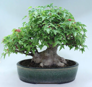 鑑賞の面からでは、春の芽だしや新緑時の豪華な躍動感に始まり、深い緑の幽玄なる杜の風景はやがて錦秋の季節へと向かって、四季折々に我々の目を楽しませてくれます。やがてすべての葉を落葉させる寒樹の季節になれば、そのときが最も盆栽家の待ち遠しい季節であって、待ちかねた裁家たちは盆上に理想の造形を求めて自然と格闘をはじめるのです。